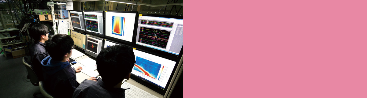 充実した実験装置と理論研究を活かし、多様な講義とカリキュラムに連携した研究室単位のゼミナールによる総合的指導と実験・輪講による個別指導を行い、最先端の専門的知識の修得と将来の研究活動や社会活動ができるように配慮しています。研究成果は学会などで積極的に発表するように指導しています。